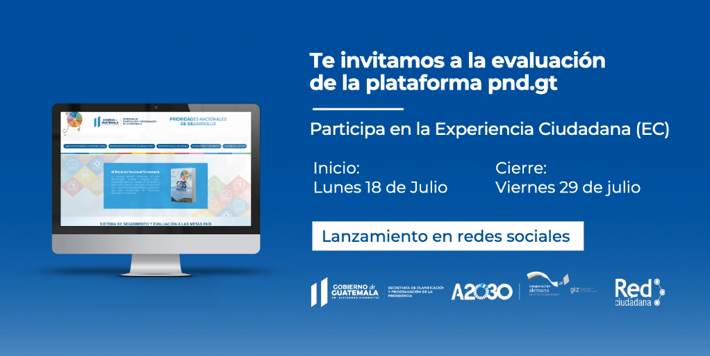¡Participa en la evaluación de la plataforma pnd.gt (incluyendo módulo ODS) y aporta tus recomendaciones para el fortalecimiento de funcionalidad y contenido!